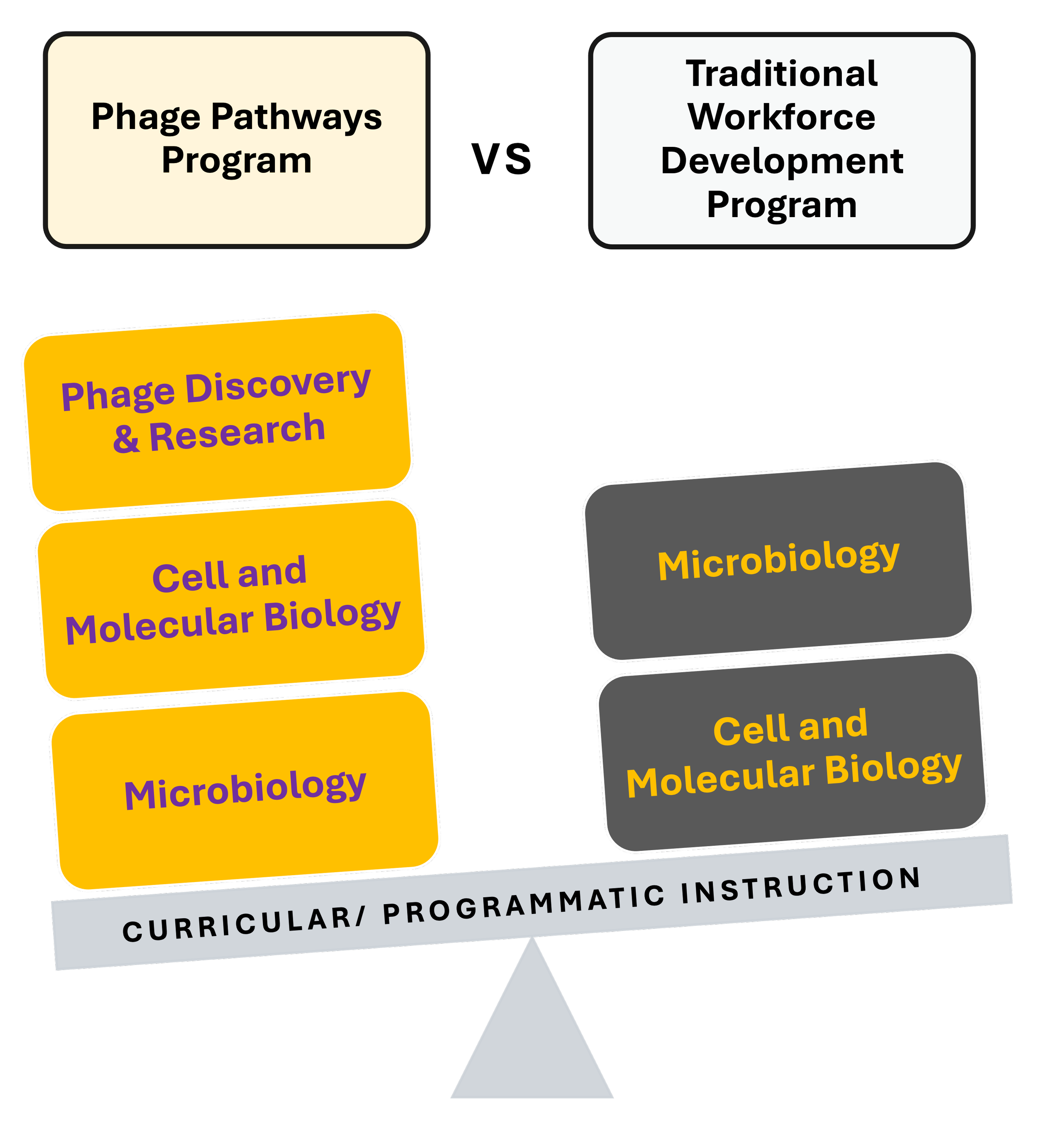The Phage Pathways program, funded by the United States Department of Energy aims to support innovative curricular and programmatic development in the undergraduate (junior/senior years) and graduate program in Microbiology and Cell and Molecular Biology at two Minority Serving Institutions San Francisco State University, and San Diego State University, with collaborative and immersive research experiences with co-investigators at University of California Davis, and DOE National Laboratories - Sandia National Laboratories and Lawrence Berkeley National Laboratory that is grounded in an evidence-based traineeship model. Students from collaborator Skyline College will also participate in program offerings.